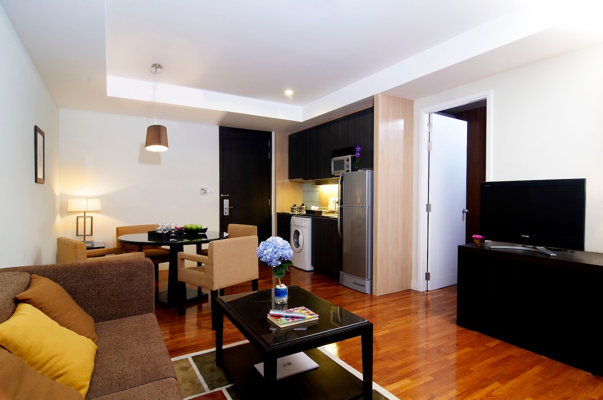 Tüm daire ve otel hizmeti sunulan 1 yatak odası + mutfak + oturma odası