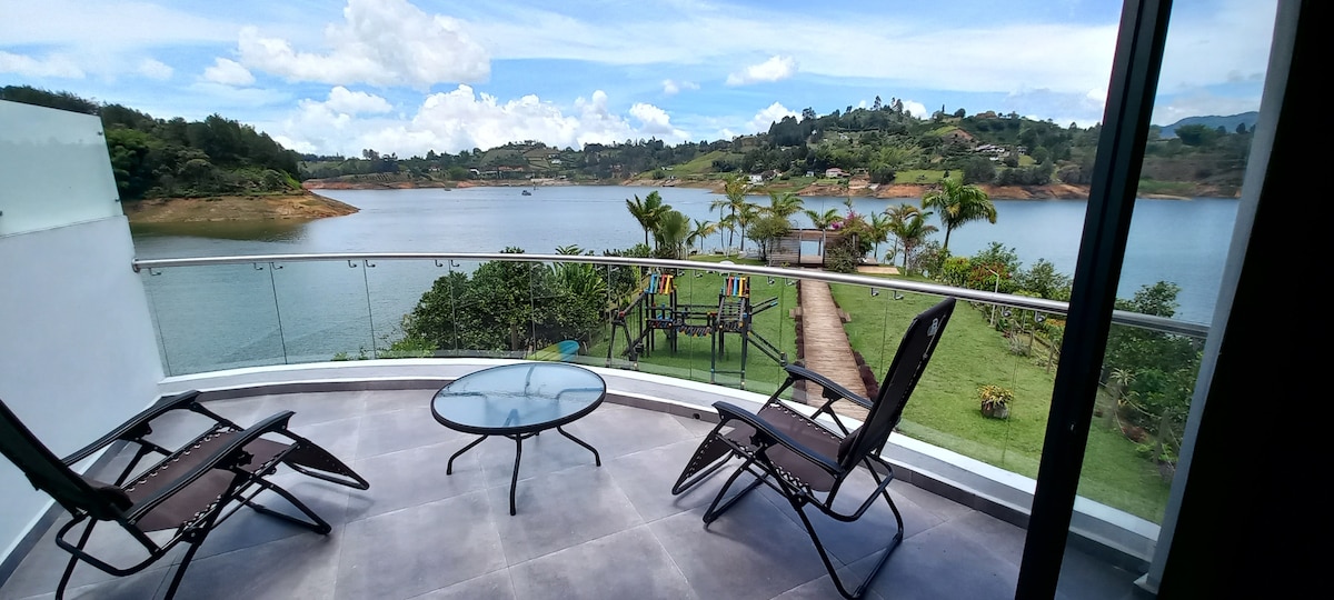 Disfruta una estadía cómoda y placentera en nuestra exclusiva habitación tipo suite de hotel. Relájate con una hermosa vista al lago desde la terraza privada o déjate consentir en el jacuzzi, ideal para desconectarte y descansar. Un espacio elegante, tranquilo y acogedor, perfecto para parejas o viajeros que buscan confort, privacidad y momentos inolvidables en un entorno natural.