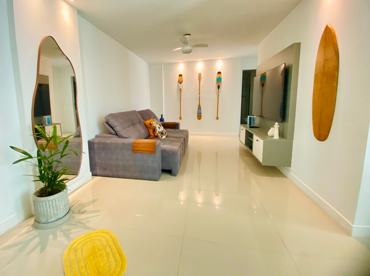 ÖNEMLİ: 2 misafir için rezervasyon yapılması durumunda sadece süit kullanılabilir olacaktır. Diğer oda sadece 3 kişiden fazla olan rezervasyonlara dahil edilecektir. - Farol Adası, Pontal do Atalaia ve Praia dos Anjos'a bakan balkonlu daire. Konumu mükemmel. 2 yatak odası ve duşlu 2 banyosu (biri süit), açılır kapanır kanepe, donanımlı mutfak, 6 kişilik yemek masası ve oturma odasında LED akıllı TV bulunmaktadır. Her iki odada da split klima ve queen yatak bulunmaktadır.