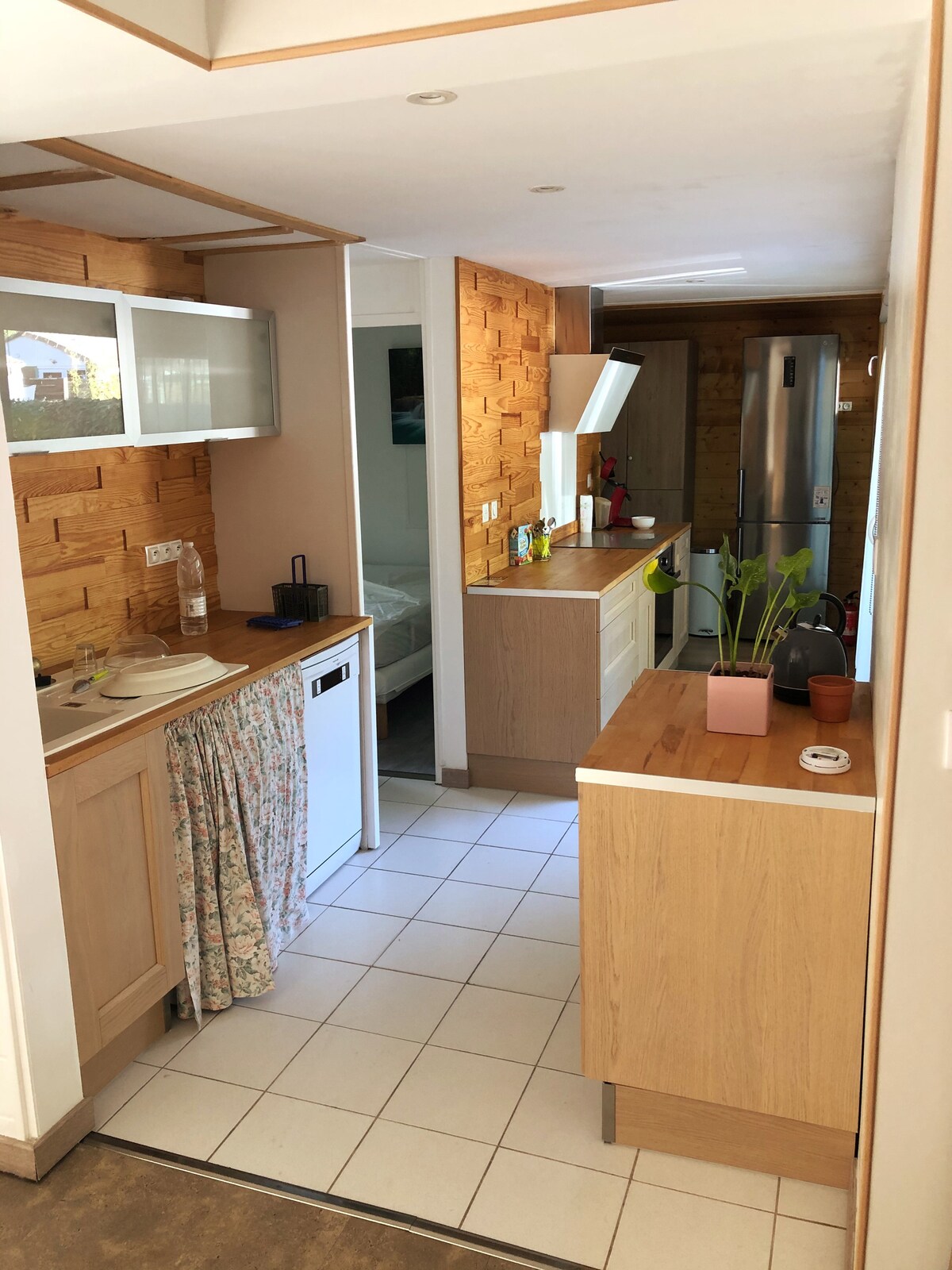 Biscarrosse'da, Landes ormanının kalbinde, 15 hektarlık bir arazide, iki kişilik mobilyalı bir tatil evi. Gîtes de France tarafından iki başak ile sınıflandırılan 35 m2'lik T2, 160'lık yatağı olan küçük bir yatak odası, İtalyan duşu ve tuvaleti olan bir banyo, donanımlı küçük mutfak, iki kişilik kanepe, TV, klima, giyinme odası, 10m2 kapalı teras, 8m2 bisiklet odası, çamaşır makinesi, barbeküden oluşmaktadır. Bu çağdaş iç mekan yapısı, büyük göllere ve mağazalara 10 dakikadan daha az, Biscarrosse Plage sahil beldesine 15 dakika, Arcachon'a 45 dakika uzaklıktadır. Evde sigara içilmez, nevresim takımı ve havlu ile birlikte krups kahve makinesi, "nespresso tipi" kapsüller, çay ve çay, şeker, küçük kekler, şişe su ile kahvaltı tepsisi sunulmaktadır.