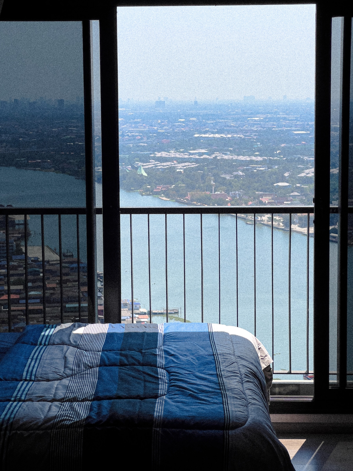 Chao Phraya Nehri'nin yanında, 59. katta, verandadan Bangkok silüeti manzaralı muhteşem, samimi ve gün doğumu 🌅 manzaralı bir kat mülkiyeti. Gün boyunca odaya bol güneş ışığı giriyor, çok enerjik ve iyi bir ortam var 🤍 Tesislerde 3 büyük yüzme havuzu ve 60. katta çarpıcı nehir ve gün batımı manzaralı özel sonsuz gökyüzü havuzu, oyun odası bulunan bir kulüp binası, nehir kıyısında ve 60. katta 360 derece Bangkok manzaralı ortak çalışma alanı bulunmaktadır :)