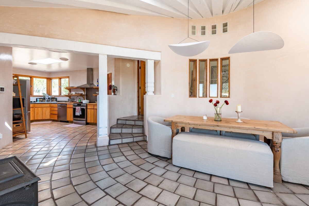 Santa Fe nehrinin yukarısında, Sun ve Atalaya dağlarının manzarasına sahip, ön kapıdan erişilebilen yürüyüş parkurları ve Canyon Rd.'nin mağazaları, galerileri ve restoranları sadece kısa bir yürüyüş mesafesinde olan "Sage Haven", zamansız sadelik ve dinginliği vurguluyor. 2020 yılında inşa edilen evde yeni güçlü kablosuz internet bağlantısı, AppleTV'li akıllı televizyonlar, mutfak ve çamaşır için Bosch cihazları, odun yakan şömine, teraslar, lüks banyolar ve son derece konforlu uyku bulunmaktadır.