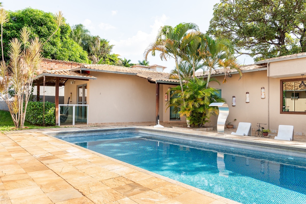 Güvenlikli bir sitede ev. Şelaleli, aydınlatmalı ve su bulunan havuz. Kanepe/yatak, koltuklar, TV85 inç, yemek masası (6 koltuk) ve banyo bulunan oda. Yüzme havuzu manzaralı elektrikli Cortinalar. 04 lüks şezlonglar. Dış Kanepe ve Şezlong. Açık hava banyosu. Dış duş. Mutfak eşyaları/aletleri. Barbekü. Ağ. Çocuklar için elastik yatak. Süit 01: İKİ çift kişilik yatak Süit 02: Çift kişilik yatak + tek kişilik yatak Her ikisi de klimalı. Mükemmel manzara.