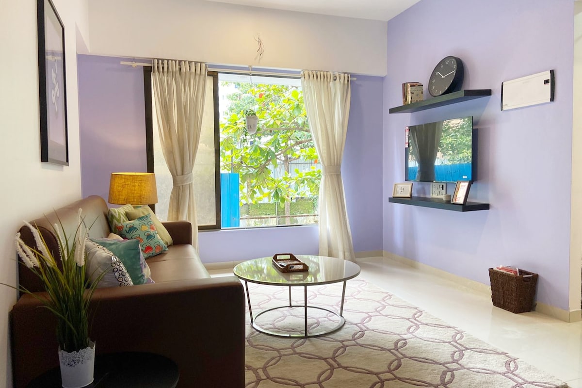 Fern Bliss'te konaklamanız için mutluluk. 🪻 ~ Lüks cennet! Lüks Santacruz West bölgesinde sofistike bir 1BHK, küçük bir deniz manzarasıyla havaalanına bakıyor. bu zarif mekân tamamen estetik✨ Çiftler, arkadaşlar için mükemmel. tek başına seyahat edenler veya iş için seyahat edenler. Zarif pastel iç mekanların, huzurlu ortamın, pitoresk dekorun, uçak izlemenin ve Mumbai'nin en iyi noktalarına eşsiz bağlantının keyfini çıkarın. Konfora, klasa ve rahatlığa değer verenler için tasarlanmıştır; hepsi tek bir kusursuz konaklamada!