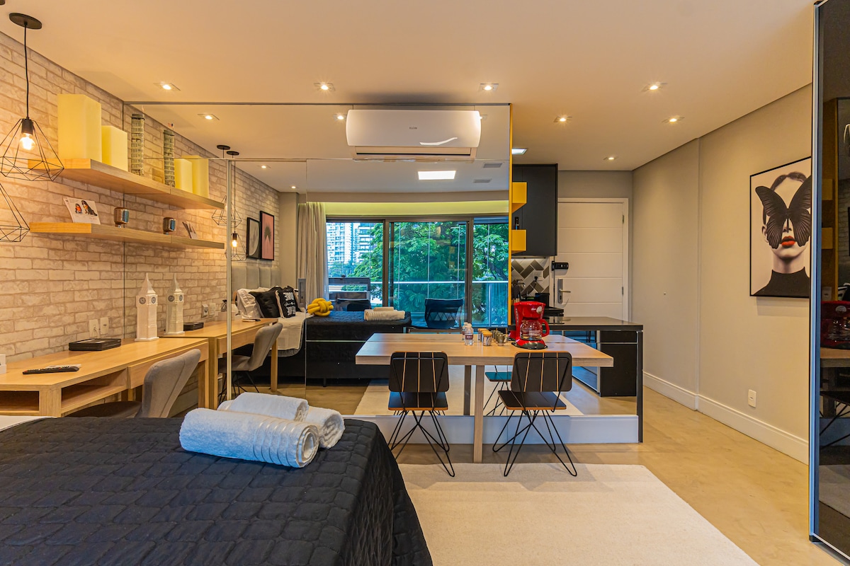 Studio sofisticado e moderno, na melhor localização do Itaim Bibi, em condomínio de luxo novíssimo e moderno próximo ao Parque Ibirapuera e Avenida Faria Lima. Ambiente projetado para ser sua casa em São Paulo. Os Hospedes tem acessos às áreas comuns do condomínio. - Lavanderia, piscina, academia completa, salão de jogos, share space com lounge, sala de reunião, share working, espaço de lazer e recepção 24 horas. - Ar condicionado split - wifi 300 mbps - cozinha completa - cama mesa e banho