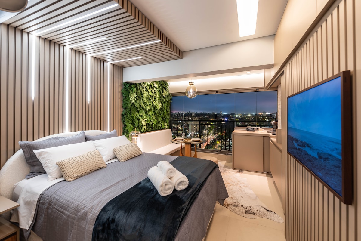 Um Refúgio em Moema — Com Mezanino e Pôr do Sol! Bem-vindo ao seu novo lugar favorito em São Paulo. Este Studio foi projetado para quem aprecia conforto, e uma atmosfera acolhedora. A luz natural invade o espaço ao fim da tarde, criando um cenário perfeito para relaxar e apreciar uma vista ampla iluminada pelo pôr do sol e experiência única. Desfrute desse espaço novíssimo e elegante! Seja em viagens a trabalho, estudo, lazer ou uma estadia romântica.