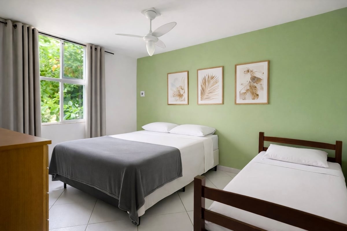 Praia do Forte'nin önünde, güzel deniz manzaralı, tamamen yenilenmiş daire Klima Caddeyi geçin ve sahilde olun 2 yatak odası (biri çift kişilik yataklı bir süit ve diğeri queen yataklı deniz manzaralı) ve çift kişilik yatak ölçülerinde rahat bir çekyatlı oturma odası 70 m2'lik geniş alanıyla 6 kişiyi rahatça barındırır. Entegre, planlanmış ve donanımlı mutfak Wi-Fi ve Akıllı TV Kusursuz temizlik Ücretsiz nevresim takımı ve banyo takımı sunuyoruz İhtiyaç halinde, aynı binada benzer başka bir dairemiz bulunmaktadır