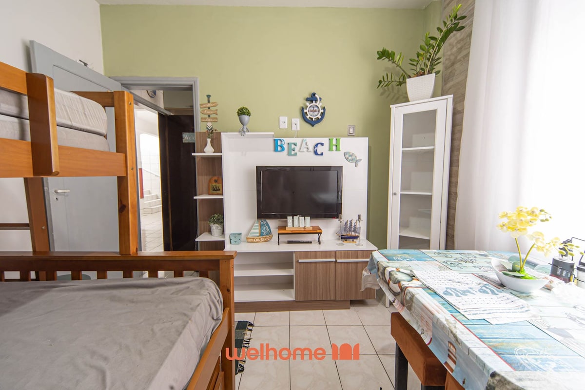 Gonzaguinha Plajı'na 30 m, Brisamar Alışveriş Merkezi'ne bir blok mesafedeyiz. Yakınlarda birkaç bar, banka, restoran, süpermarket, otopark, eczane, şarap imalathanesi, evcil hayvan dükkanı ve çok daha fazlası var! - Klimalı - Ekstra yastıklı enxoval - wi - fi - Kömürlü mangallı varanda (odun kömürü, çakmak tedarik etmiyoruz) - Queen Ortobom Yatak Açılır kapanır kanepe - cozinha equipada - TV 65” - Plaj seti (1 sandalye ve soğutucu). Kuaför - Geçen ütü. @ airbnb_sao_ Vicente