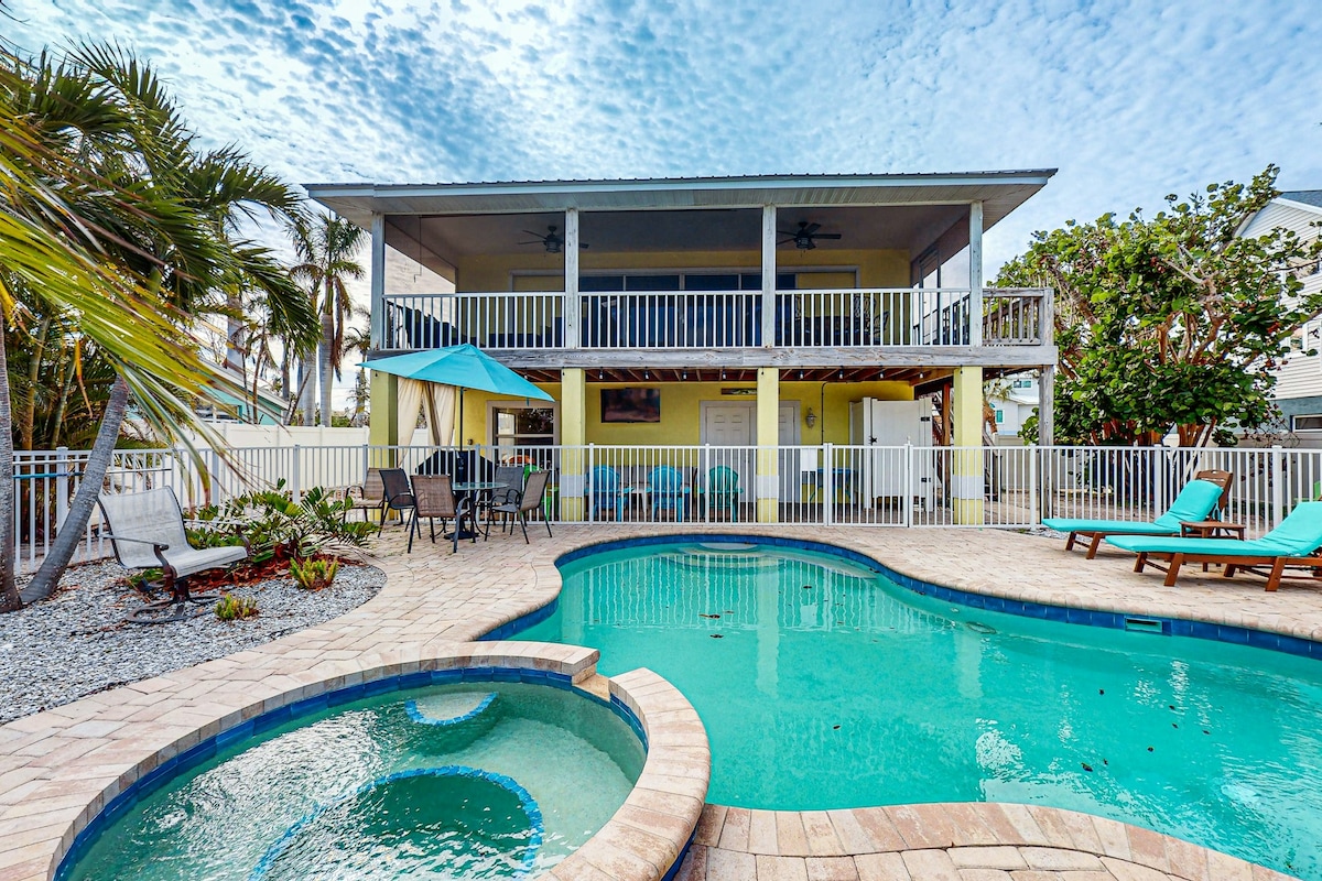 Discover your perfect Siesta Key getaway in this vibrant 3BR, pet freindly duplex in the peaceful South Village. Just steps from the Gulf Coast beaches, this private retreat blends colorful décor, modern comfort, and playful outdoor fun. Lounge by the private 𝐡𝐞𝐚𝐭𝐞𝐝 𝐩𝐨𝐨𝐥, soak in the 𝐡𝐨𝐭 𝐭𝐮𝐛, or enjoy the backyard murals perfect for families, groups, and beach lovers. Book now for an unforgettable stay! <b>☀ Private Pool ☀ BBQ Grill ☀ Easy Beach Access</b>