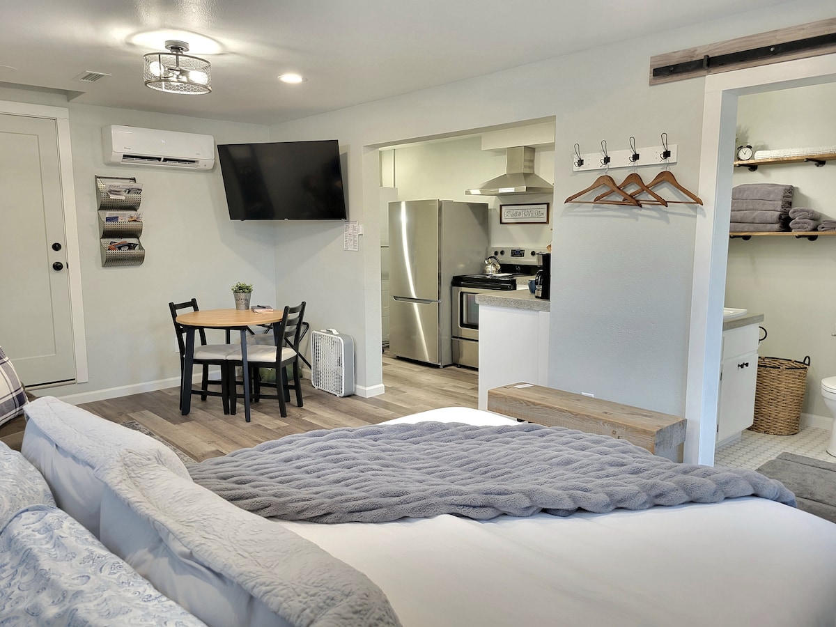 Merkezî bir konumda bulunan bu inziva yerinde şık bir deneyimin tadını çıkarın! Alışveriş merkezi, alışveriş, yemek ve en iyi şarap imalathanelerine 3 mil mesafede. Lüks, ferah duşta dinlenin, rahat king boy yatakta uzanın veya kendi çalışma alanınızda üretken olun. NOT: Bu, ailemizin yaşam alanının altındaki bir bodrum katı dairesidir. Ses geçişini ortadan kaldırmak için büyük çaba sarf etsek de, yukarıda ara sıra ayak sesleri duyabilirsiniz (özellikle 07.00-09.00 ve 17.00-19.00).