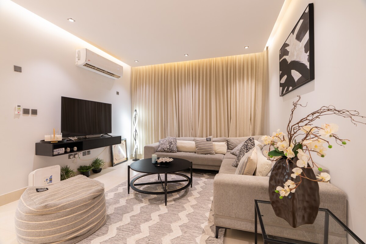 Daire, Riyad'ın kuzeyindeki en lüks semtlerden biri olan Al-Rabie semtinde yer alıyor ve en son lüks mobilyalarla tasarlandı. 75 inç akıllı ekran, yüksek hızlı internet ve Nespresso kahve makinesi içerir. Daire, bağımsız giriş ve tam gizlilik ile karakterize edilir. Kompleksin önünde bir yürüyüş yolu bulunur ve Riyad Bulvarı'na 15 dakika, Kral Abdullah Finans Merkezi'ne 10 dakika ve herhangi bir trafik ışığında durmadan Kral Halid Uluslararası Havalimanı'na 15 dakika uzaklıktadır. Ayrıca (NETFLIX - Shahid) aboneliği Misafir erişimi Kendi kendine giriş