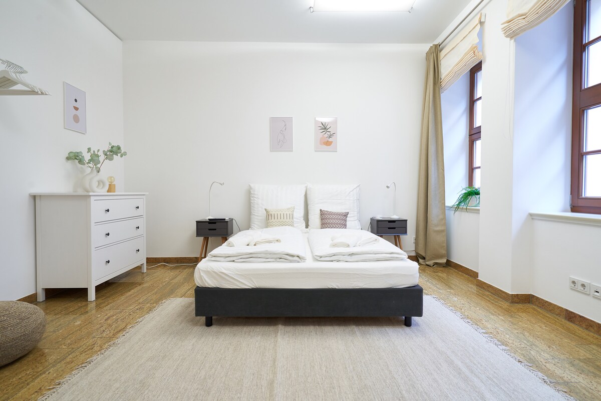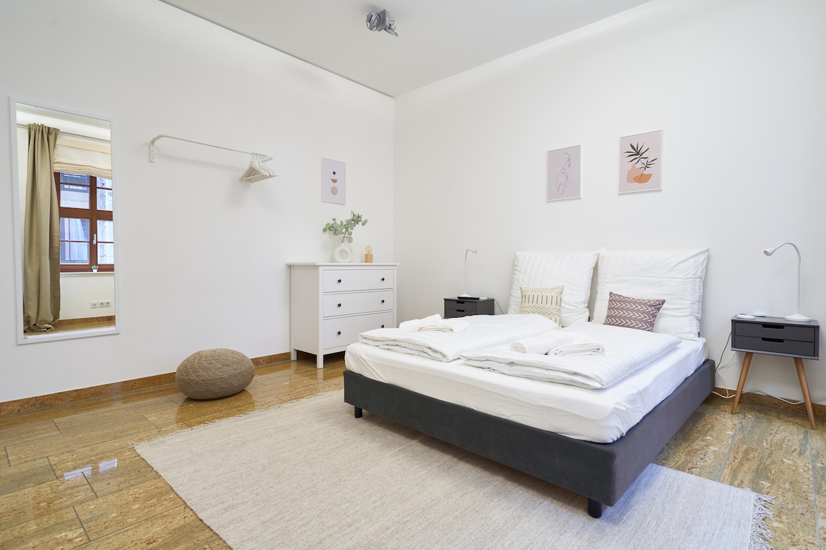 Tarihi bir anıt olarak restore edilmiş görkemli bir binada rüya gibi konaklama - Das Palatium. Elbe Nehri üzerinde ve tarihi eski şehrin karşısında, asil barok semtte, doğrudan Palaisplatz'da bulunan, yüksek kaliteli donanımlı ve çok geniş bir çatı katı dairesi. İki ayrı uyku alanına sahip olan daire, aileler ve 4 kişilik gruplar için idealdir. Hem kültürel ve mimari açıdan eşsiz olan tarihi şehrin hem de dış şehrin canlı semtine yürüyerek ulaşabilirsiniz.