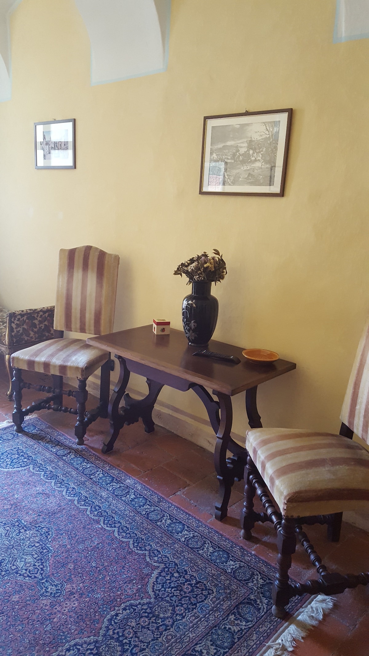 Bu daire, on sekizinci yüzyılın ortalarına dayanan çiftlik evine saygı göstererek biyo-mimari ilkelerine göre yenilenmiştir. Yaşam alanında açıkta bırakılan kemerler ve bir duvar, konaklayacağınız yerin antikliğini vurgulamaktadır. Mutfak, indüksiyonlu ocak ile modern olup, her türlü mutfak aleti ile donatılmıştır. Masa, ortamı zenginleştiren benzersiz bir parçadır. Banyo, özellikle bir nişten elde edilen duş ile ultra tasarımlıdır.