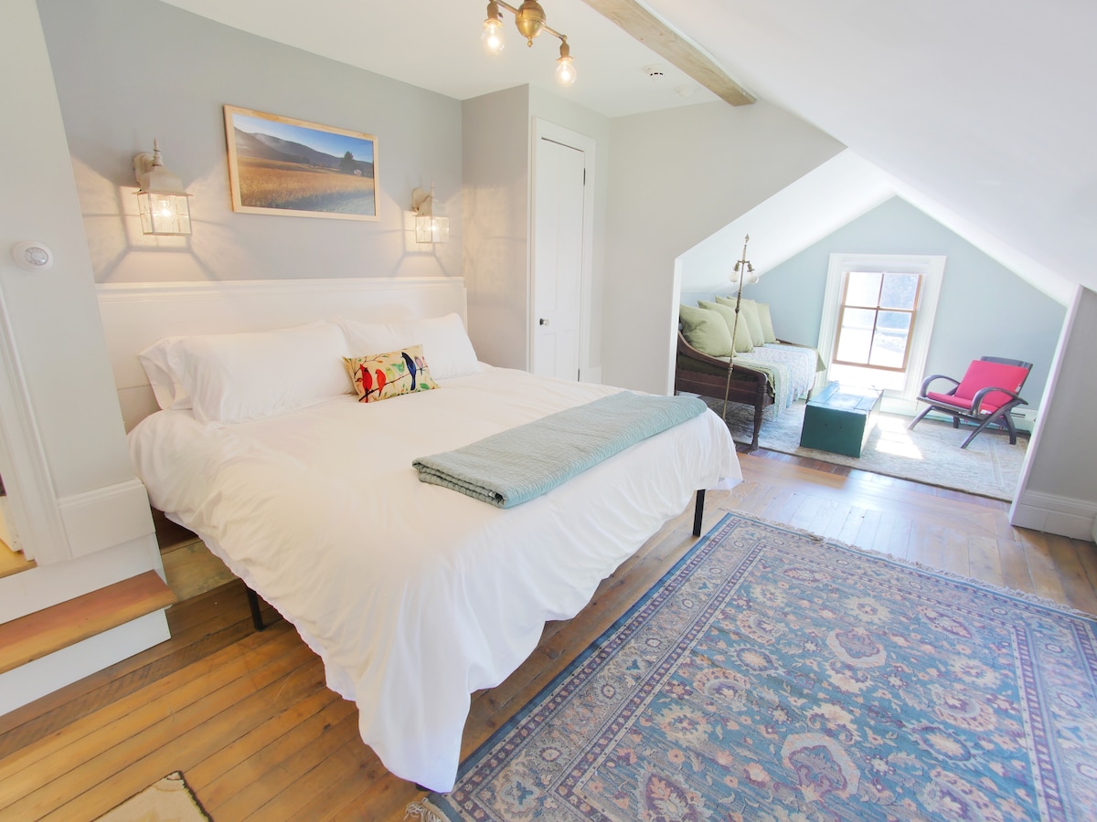 Spring Brook Farm is located in the historic village of Schoharie, New York, thirty minutes from Albany. Walk our 140 acre farm that meanders along the Schoharie Creek. Rent kayaks in town, hike Vrooman’s Nose or just relax in our screened porch. The farmhouse is handicap friendly including zero entry, first floor daybed and a first floor handicap bathroom. Locally sourced breakfast supplies included! Beds: First floor: King daybed Second floor: Bedroom 1-double, twin xl Bedroom 2-queen Sleeps 7