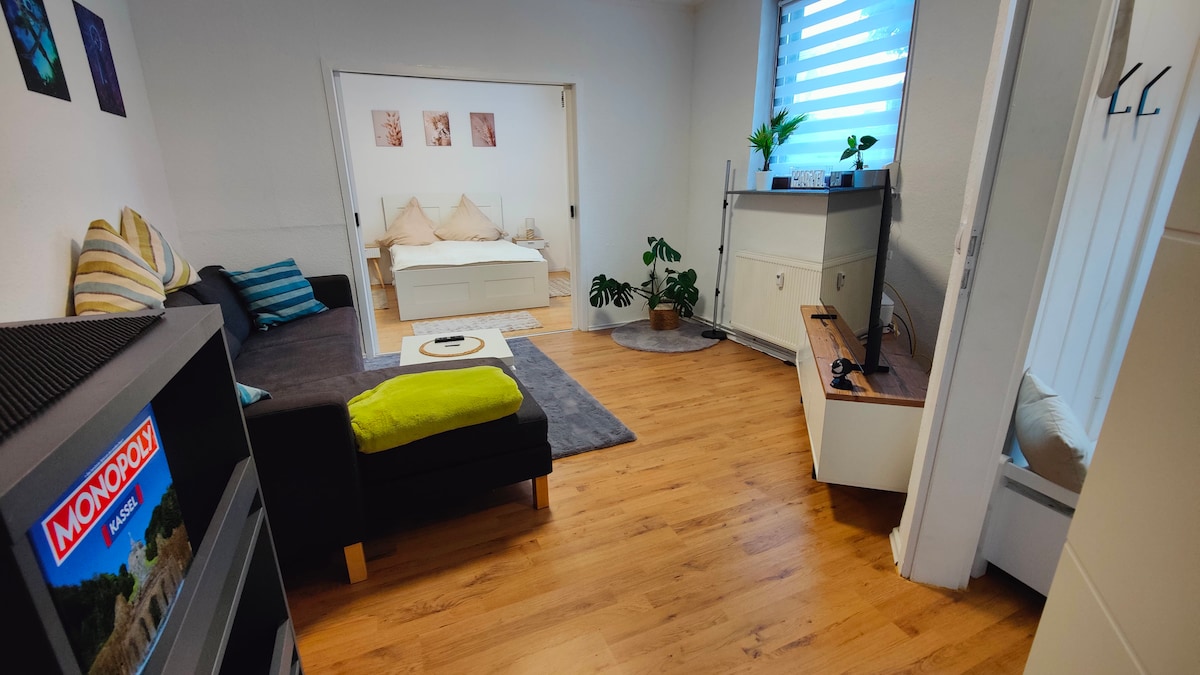 Gemütliches und liebevoll eingerichtetes Appartement in zentraler Lage von Sandershausen. Eine Bäckerei sowie Einkaufsmöglichkeiten sind in wenigen Minuten bequem zu Fuß erreichbar. Die Wohnung verfügt über einen privaten Eingang und einen Parkplatz direkt vor der Tür. Eine voll ausgestattete Küche mit eine barrierefreie Dusche, kostenloses WLAN sowie ein 55-Zoll-TV mit Streaming-Funktion. Zusätzlich steht ein Schreibtisch mit Stuhl zur Verfügung – ideal für Urlauber und Geschäftsreisende.