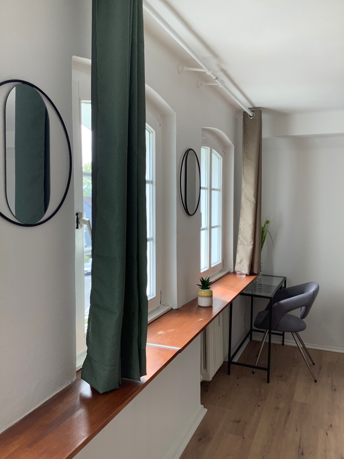 Kendine ait girişi olan daire birinci katta katında yer almakta olup 2 kata yayılmıştır. Alt katta tuvaletli bir duş ve küçük bir mutfak bulunmaktadır. İki yatak odası bulunan aydınlık oturma odasına merdivenle ulaşılabilir. Dairenin kendi girişi vardır ve şehir merkezine yakın olmasına rağmen çok sakin bir çıkmaz sokakta bulunmaktadır. Dortmund, Essen, Düsseldorf ve Münster gibi şehirlere toplu taşıma araçlarıyla da hızlı bir şekilde ulaşılabilir.
