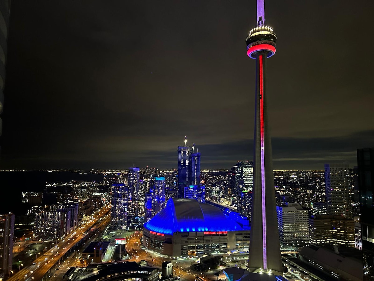 Imagine waking up to the breathtaking sight of the CN Tower piercing the skyline, its reflection dancing on Lake Ontario. After a day exploring Toronto's vibrant streets and visiting landmarks like the Rogers Centre, the Scotiabank Centre & the magical Ripley's Aquarium, unwind in the living area with panoramic views, or stroll to nearby restaurants and nightlife. Equipped with basic cooking and dining utensils, towels, linens, and bath essentials. Catch your favourite show on the smart TV.