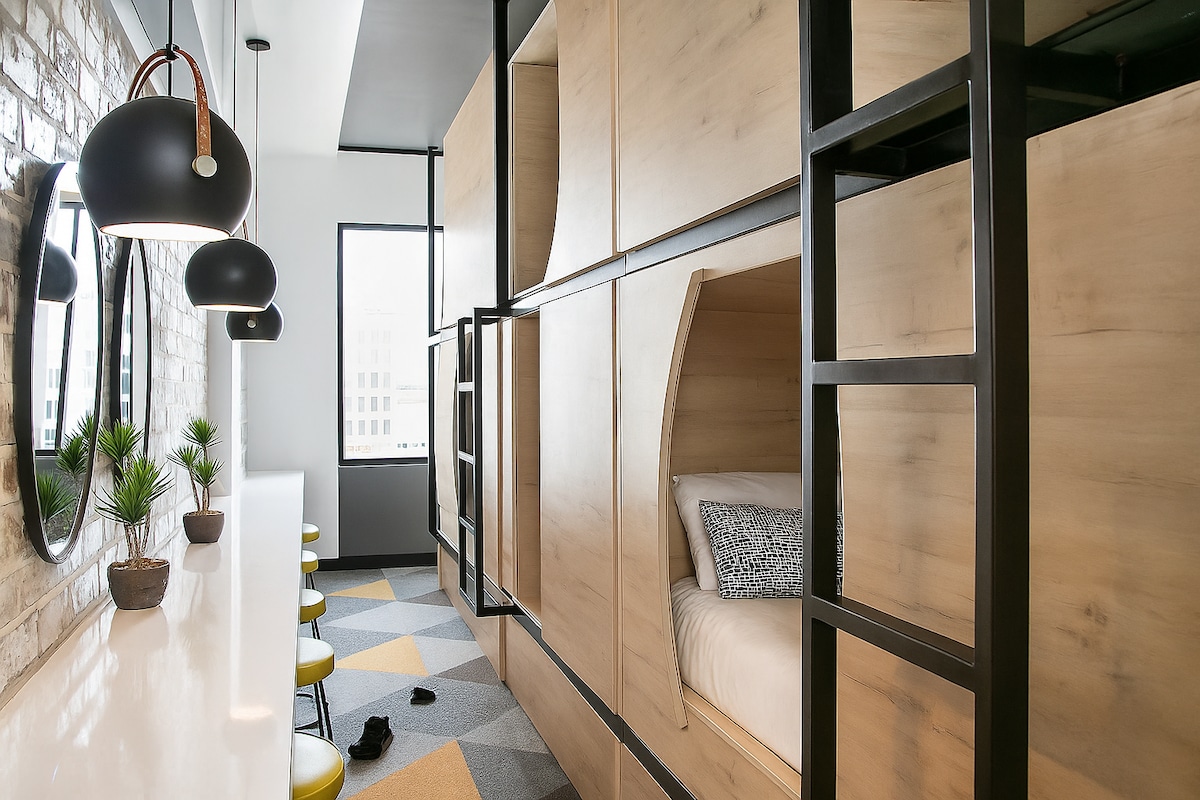 Kalabalığın bir parçası olun ve Cape Town'un merkezinde şık ısmarlama Pod'larımızdan birini rezerve edin. Her gün temizlenen bir odada otel kalitesinde nevresimlerle ekstra uzun yataklarımızdan birine yayılabilirsiniz. Pod odası, 20 Pod ve birden fazla duş, tuvalet ve lavaboya sahip büyük bir karışım kullanım banyosundan oluşan 20 yataklı ortak yatak odasıdır. Beklediğiniz tüm olanaklara ve daha fazlasına sahibiz. Her odaya ve kart erişim dolaplarına güvenli kart erişimi, eşyalarınızın her zaman güvende olmasını sağlar.