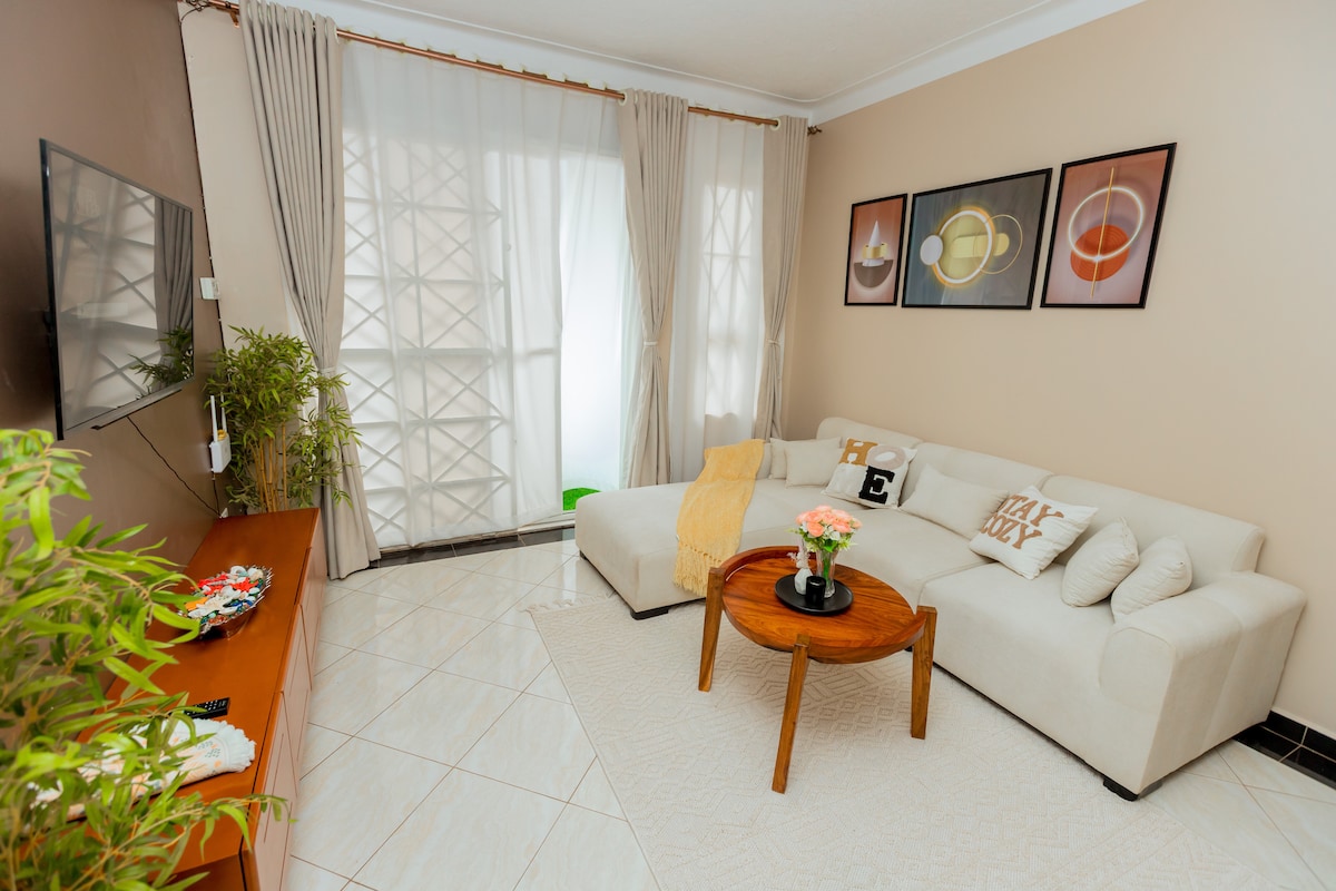 Kampala şehir merkezine sadece birkaç dakika uzaklıktaki Bukasa'daki bu şık 3 yatak odalı/3 banyolu konutta dinlenin. Lüks queen yatakların, her odada klimanın, fiber kablosuz internet bağlantısının, akıllı TV'lerin, uydunun, tam donanımlı mutfağın, çamaşır makinesinin ve USB şarjlı 3 spa tarzı banyonun keyfini çıkarın. 7/24 güvenlik, ücretsiz park yeri ve sorunsuz giriş içiniz rahat olsun. Havaalanından alma, rehberli turlar veya temizlik hakkında soru sorun. Aileler, dijital göçebeler, iş için seyahat edenler, uzun süreli misafirler veya bir sonraki stressiz kaçamağınız için mükemmeldir.