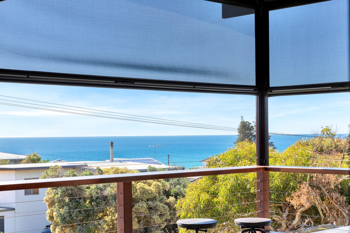 Kick back & relax in a stylish sustainable tiny house with 180 views of nearby Carrickalinga Beach. A private refuge on acreage. Lose yourself in daily sunsets, stunning storm clouds & expansive views to Rapid Head & the Gulf Enjoy stargazing from picture windows or the deck. Carrickalinga is an official International Dark Sky Community The tiny's interior is total comfort. A queen bed, aircon, TV & romantic indoor wood fire for chillier nights. Small kitchen. Cafe lights on the deck & fire pit