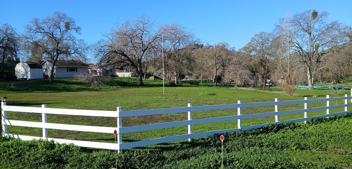 ARTSY MID-CENTURY Casita, minutes from Sequoia & Kings Canyon Nat’l Parks. Enjoy my spacious studio getaway on a private hill surrounded by gorgeous mountains & the sounds of the Kaweah River. Secluded, yet minutes away from restaurants, bars, galleries & markets. Full kitchen, half fridge. Basics, Hot Chocolate, coffee/tea spices, BBQ Grill, wood burning fireplace, WIFI, comfy Queen bed. Huge Rock shower! Explore the Parks, come home & relax, chill out in the SPA and stargaze... BLISS!