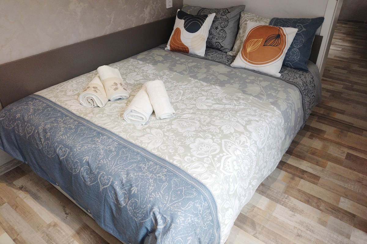 Dairemiz 5. katta yer almaktadır, bina Geo Milev şehir parkının hemen yanındadır. Havaalanı ile şehir merkezi arasında uygun bir şekilde yer alan bu çok sessiz bir konumdadır ve aynı zamanda bekarlar, çiftler ve iş için seyahat edenler için uygun olan otobüs bağlantılarına da yakındır. Konforlu tasarım ve dekor sizi evinizde hissettirecek ve yoğun günün ardından rahatlamanıza yardımcı olacaktır. Dairede konaklamanızı mükemmel hale getirmek için ihtiyacınız olan her şeyi bulacaksınız!