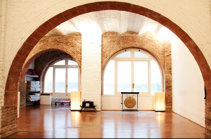 Barselona Sant Gervasi'de tam donanımlı bir yoga stüdyosunda bir Iyengar yoga grubu dersine katılın.