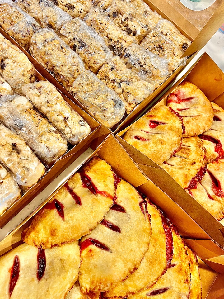 Aylık fırınlanmış ikramlar menüsünden nefis bir seçkinin tadını çıkarın. Ürünler arasında tatlı ve tuzlu el yapımı turtalar, ekşi mayalı focaccia, kurabiyeler, protein topları ve dönen aylık özel bir ürün yer alabilir. Tüm unlu mamullerde mümkün olan en taze yerel malzemeler kullanılır.
