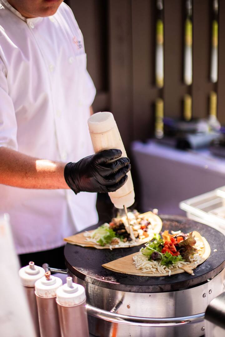 Tuzlu ve tatlı seçenekler arasında paylaşılan, el yapımı 50 kreple birinci sınıf bir canlı istasyon deneyimi. Özel lezzetli başlangıç yemeklerinde birinci sınıf proteinler ve taze, mevsimlik malzemeler kullanılıyor. Ustalıkla hazırlanmış krep tatlıları, sofistike damak zevkleri için enfes tat kombinasyonları sunuyor.