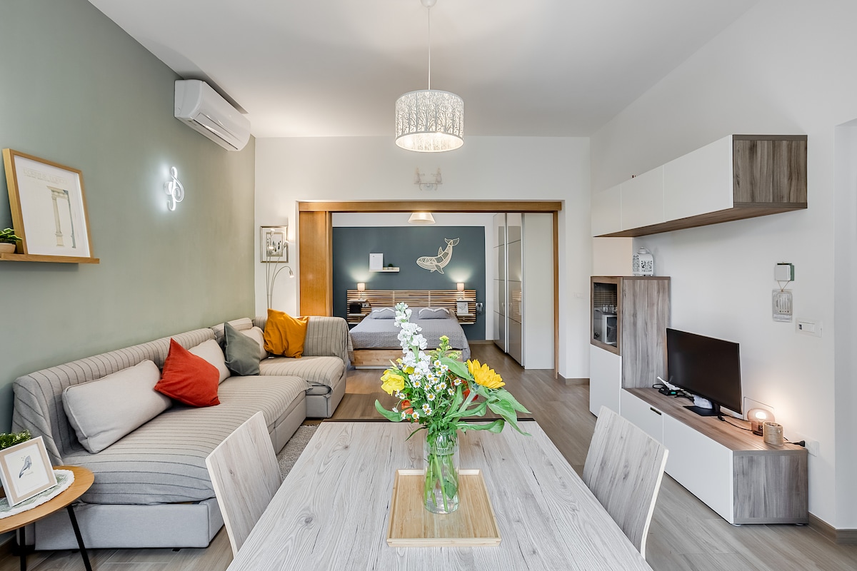 Lovely apartment in Piazza San Giovanni, in the center of Rome, it is possible to reach in 10/15 minutes historical places and monuments such as the Colosseum, Fori Imperiali, Piazza Venezia.The house is located on the second floor of an elegant and modern building, the house is composed of living room with kitchen area, sofa bed, bedroom, bathroom with large shower and a beautiful terrace.The environment is characterized by elegance, attention to detail and modern / vintage functional style.