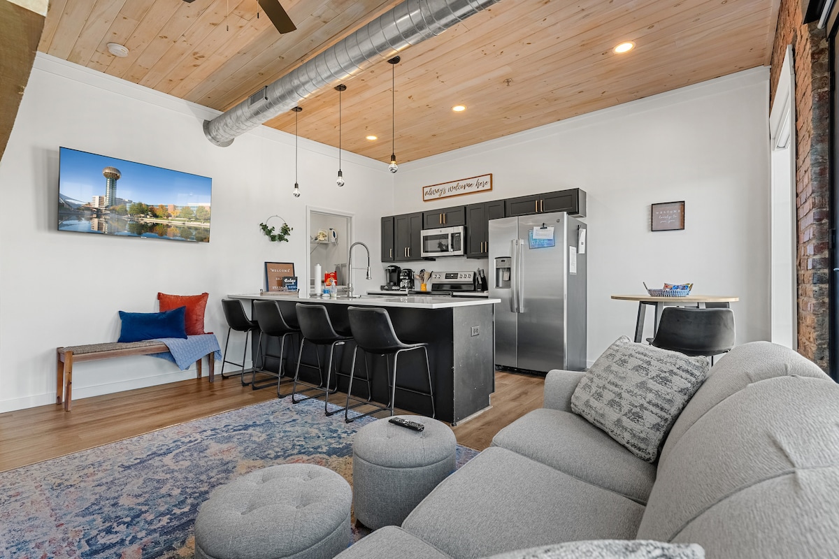 Sevierville şehir merkezinde karakteristik, konforlu ve rakipsiz yürüyebilirlik sunan, güzel bir şekilde restore edilmiş tarihi bir çatı katı olan The Notch'a hoş geldiniz. Bu şık mekân, modern olanakları rustik cazibeyle harmanlıyor. Görünür kirişler, özenle seçilmiş dekorasyon ve dinlenmek veya eğlenmek için tasarlanmış bir düzen. Misafirler restoranlara, kahve dükkanlarına ve yerel turistik yerlere yürüyerek gidip hem samimi hem de özel bir mekânda gevşeyerek eve gelmeyi sever.