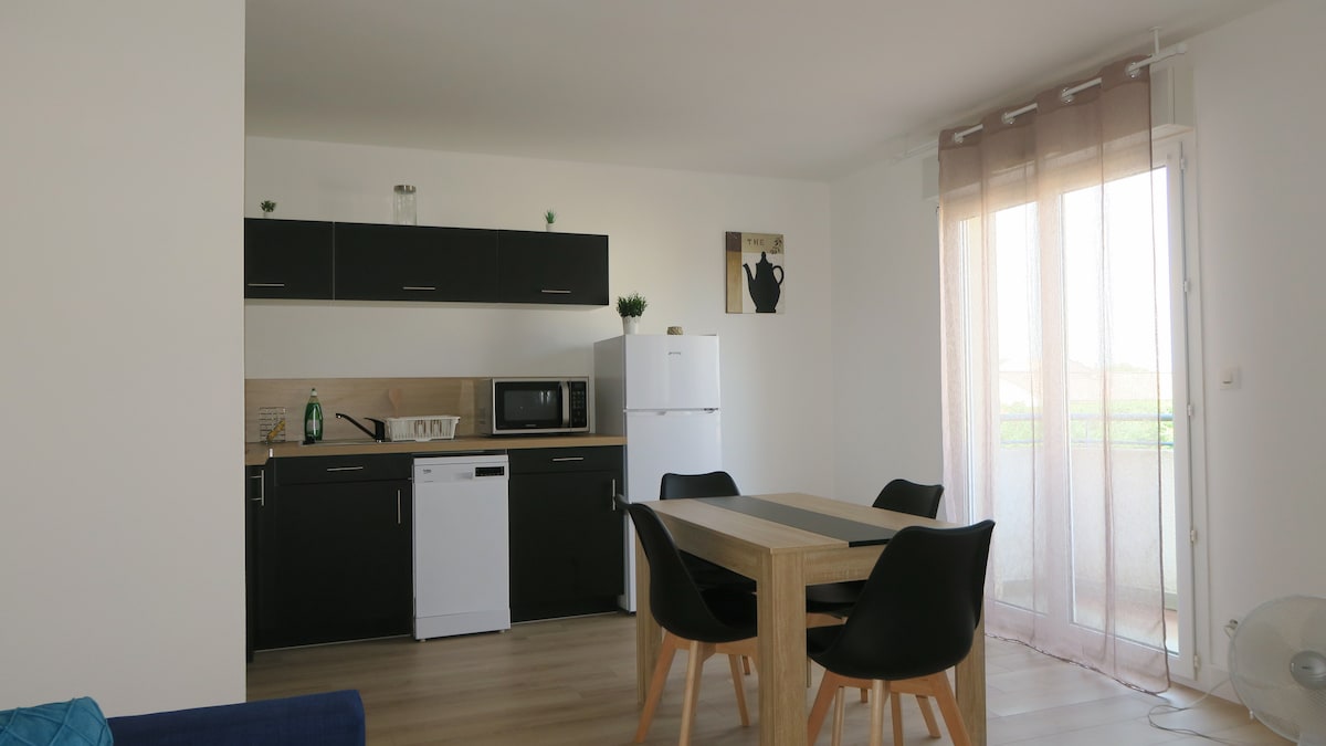 Geniş balkonlu geniş T3/park manzaralı 20 m² teras. Seysses merkezde Toulouse'a 20 km, Muret'e 4 km mesafede 65 m²' lik yeni daire. Özel park yeri, 2 araba. Ters çevrilebilir klima, TV, WIFI, çamaşır makinesi ile en fazla 6 kişi (1 çift kişilik yatak, 2 tek kişilik yatak ve 1 çift kişilik çekyat) için tam donanımlı, sigara içilmeyen, konforlu konaklama… Minimum 2 gecelik rezervasyon.