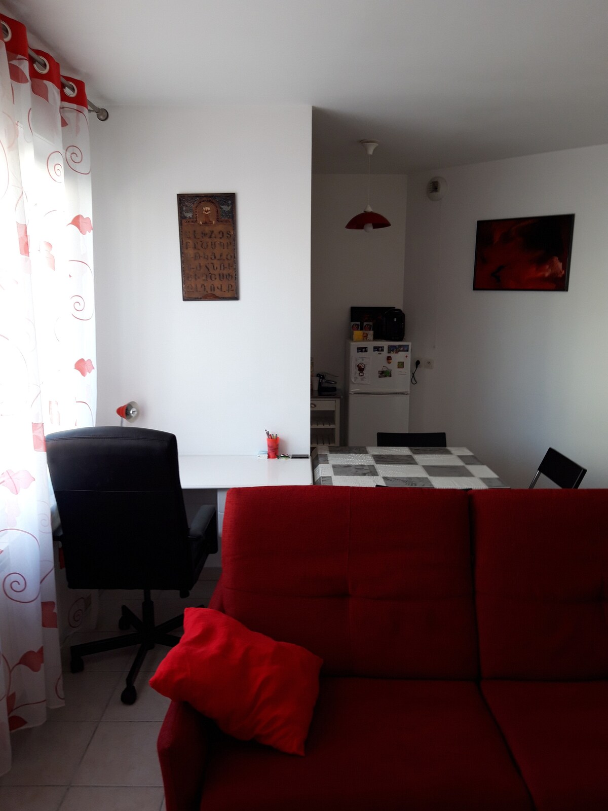 Yeni! Vienne merkezinde yenilenmiş bu güzel stüdyoyu keşfedin. Konum: Sous-Préfecture bölgesinde, tren istasyonuna 400 m mesafede, sessiz bir konumdadır. NADİR: sokakta ücretsiz park yerleri. Konuttan her yere yürüyerek gidilebilir! İstasyon, Cours Brillier, şehir bahçesi ve sinema, mağazalar ve antik tiyatroya çok yakın. Stüdyo: açık plan mutfak, giyinme odası, kanepe, Queen size yatak (160x200) ve geniş lüks banyo.