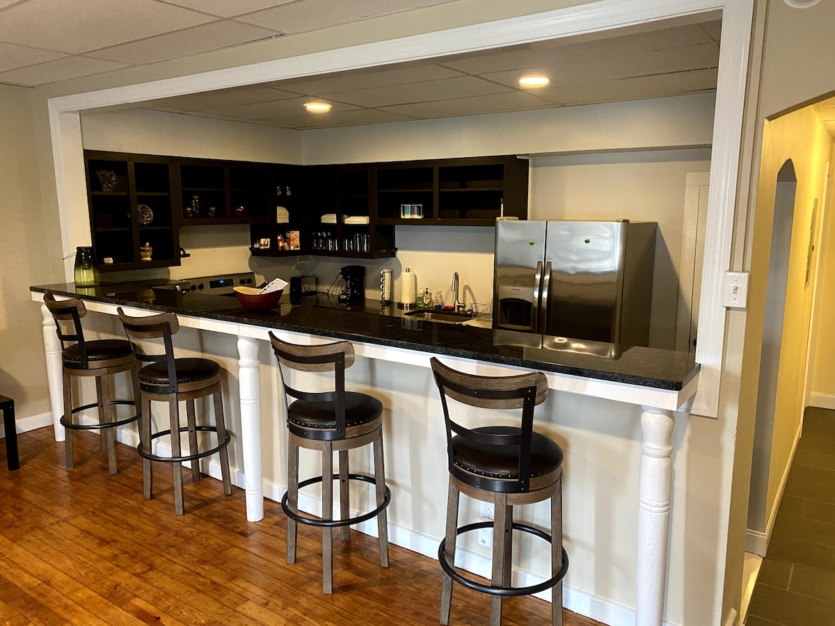 Gelin ve aileniz ve arkadaşlarınızla eğlenin! Kömür ülkesi Shamē, Pensilvanya'daki yaklaşık 1900 evimizde kalın. Evin her yerinde yeni ve eskinin bir kombinasyonuna sahibiz. En sevdiğiniz içecekle arka verandada oturun ve nefes kesici manzaraya hayran kalın! Güneşin sabahları alçak sisli bulutları yaktığını veya akşamları gün batarken gölgelerin dağın üzerinden geçtiğini izleyin. Tiyatro odamızda film izlemekten sıkılırsanız ya da ailece eğlenmek için mutfak masamızın etrafında oturun.