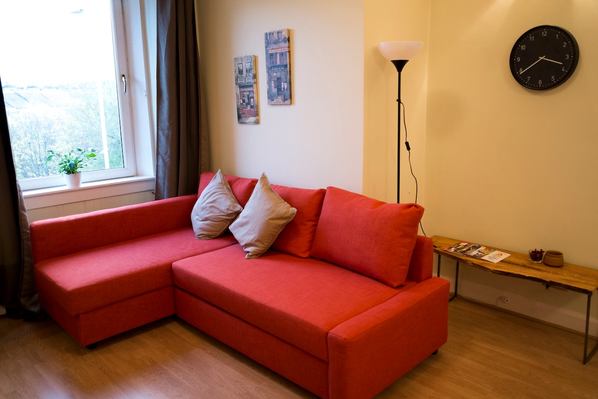 Gorgie'de ve Murrayfield Stadyumu tramvay durağına 5 dakika yürüme mesafesinde yer alan güzel 1 yatak odalı dairemiz Edinburgh'u keşfetmek için MÜKEMMEL bir üstür. 3 ila 4 misafire yetecek kadar geniştir. Konumu harika ve yerel olanaklara kolay erişim: Lothian otobüsü 30 ile şehir merkezine 7 -10 dakika; Haymarket istasyonuna 2, 3,33,25 numaralı otobüsle 8 dakika. Kapının hemen dışındaki 2 numaralı otobüs sizi doğrudan eski şehir kalesine götürür. Tramvay durağı yakındadır. Sainsbury, Aldi ve McDonald's köşeyi dönünce. Sadece hafta sonu ücretsiz park yeri.