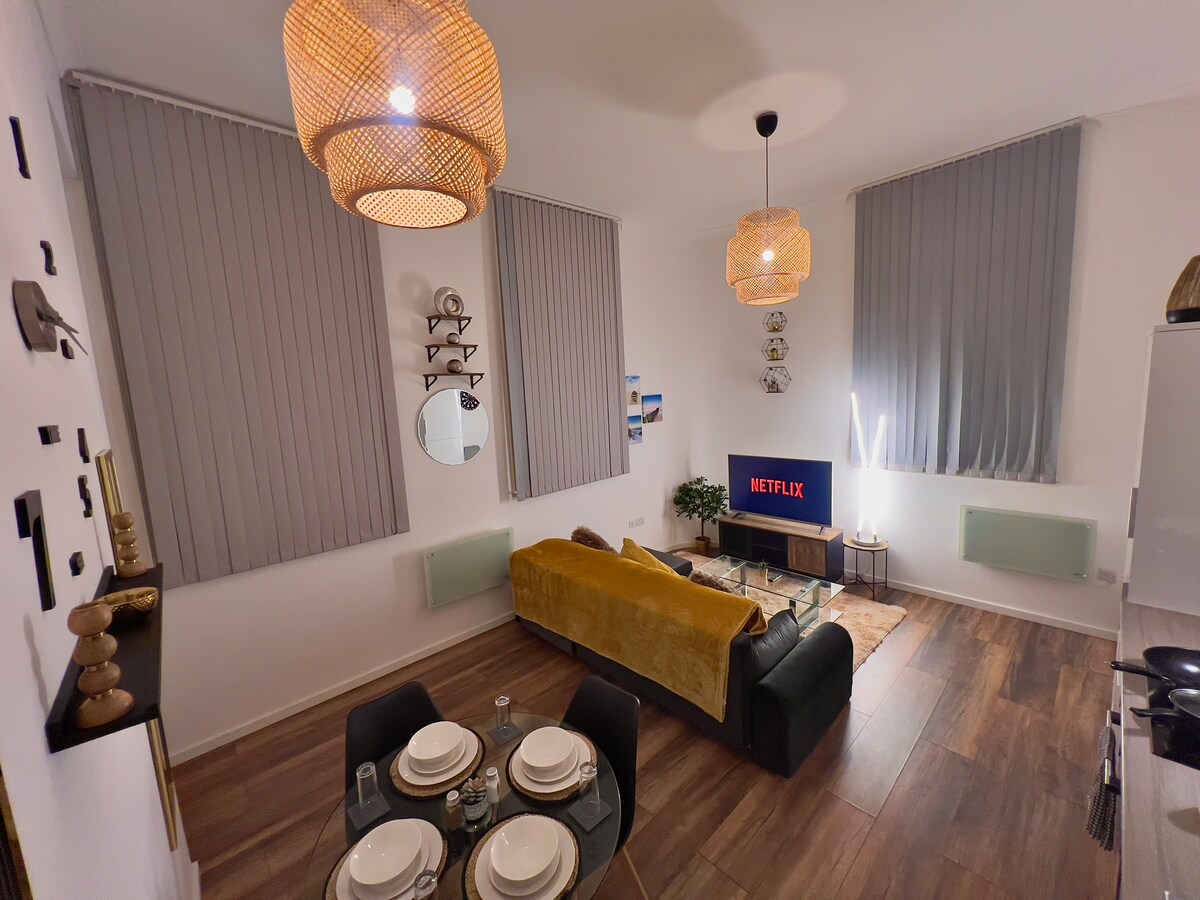 Sheffield Şehir Merkezi'nde tarihi karakter ve modern tasarımı harmanlayan güzel tasarımlı çatı katı. 4 kişiye kadar uyuyabilir, Avrupa çift kişilik ve çift kişilik çekyat. Hızlı kablosuz internet bağlantısı. Kolay kendi kendine giriş. Tam donanımlı mutfak. Yatak odasında projektör (Netflix ve Prime) ve çalışma masası/giyinme masası bulunur. Şehir Merkezi ve yerel Kelham Adası'ndaki en iyi restoranlara, kafelere, barlara, tiyatrolara ve kültürel etkinliklere birkaç dakika mesafededir. Peak District arabayla yaklaşık 10 dakika uzaklıktadır, manzaralı yürüyüşler ve günlük geziler için idealdir.