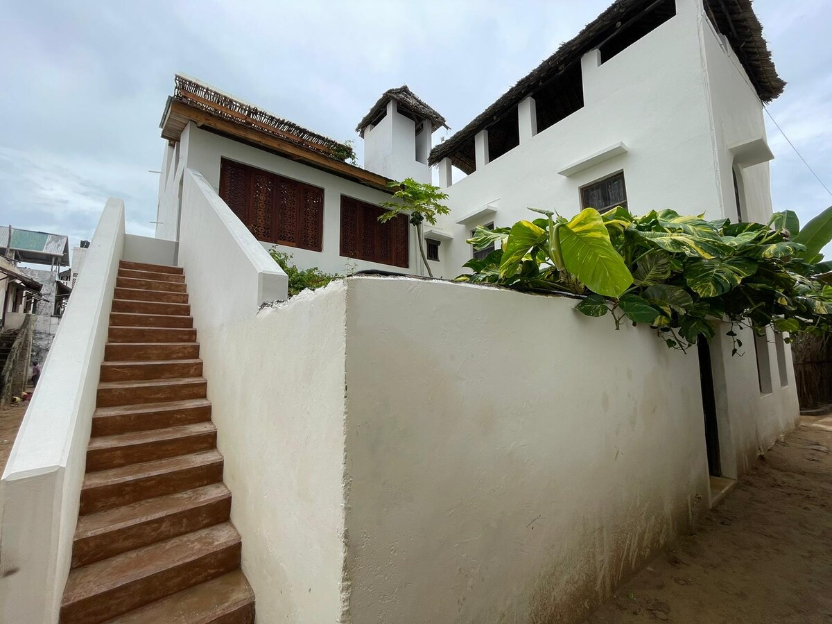 A light-filled gem. 2-story, 3-bedroom apartment with a gorgeous, rooftop verandah. Enjoy a relaxing and authentic experience at this centrally-located spot. Each bedroom has a king size bed w/ensuite bathroom, ceiling and standing fans. Fully equipped kitchen. Staff are available for shopping, cleaning and preparing meals. Tour the village and Lamu town. The beach is a 5-min. walk. Enjoy sunset, fishing, and snorkeling excursions, and amazing Swahili food at wonderful cafes and restaurants.