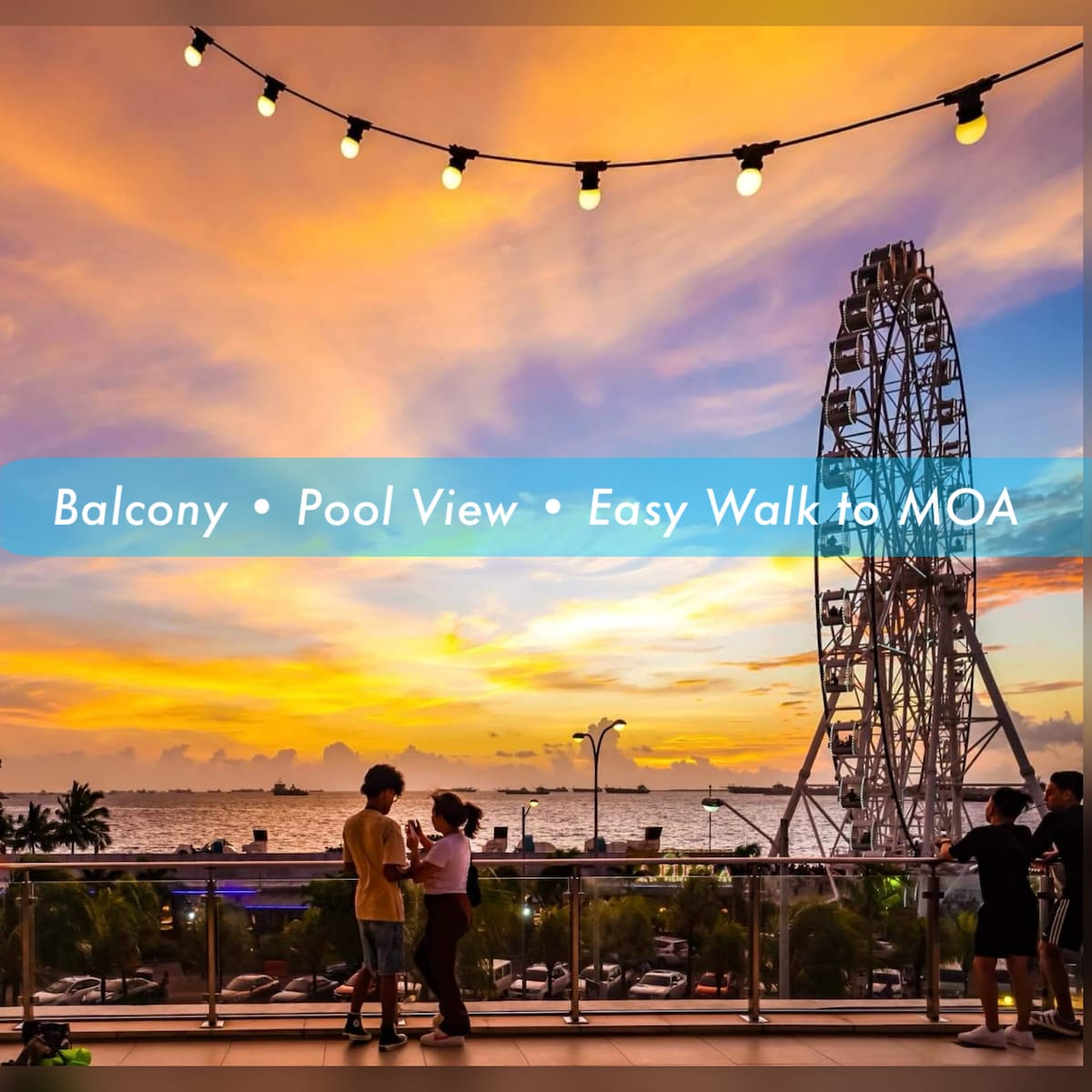 MOA'nın hemen önünde ve NAIA'ya sadece 4,5 km uzaklıktaki Shore 3 Residences'taki ultra lüks ve rahat, 32 m2, 1 yatak odalı, balkonlu (havuz manzaralı) dairemizi deneyimleyin! 1-65" SmartTV (oturma odası), 1-40" SmartTV (yatak odası), 200 mbps kablosuz internet bağlantısı, Utube ve Netflix, queen boy yatak, çekyat, hem yatak odasında hem de oturma odasında klima ve Nespresso makinesi, keyfini çıkarmanız için bu üniteyi cömertçe donattığımız şeylerden sadece bazıları!
