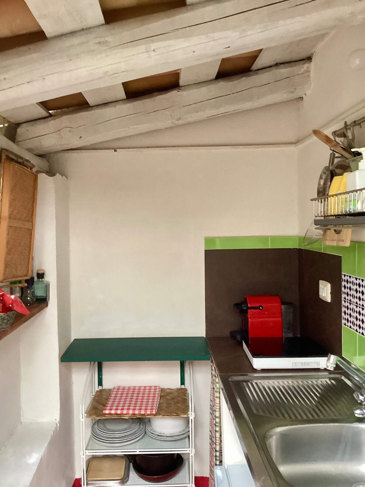 Ev, açık havada küçük bir mutfağı ve villayı çevreleyen farklı türde Akdeniz bitkileri ve ağaçları olan bir bahçesi olan geniş bir açık alana bakmaktadır. Zemin katta büyük bir mutfak ve şömine ve çekyatlı oturma odası bulunmaktadır; üst katta çift kişilik yataklı bir yatak odası ve 2 tek kişilik yataklı bir yatak odası, bir antre, bir balkon, banyo bulunmaktadır. Tüm odalarda ısıtma, pencereler (fileli) ve gardırop bulunmaktadır. Zemin katta ve birinci katta klima bulunmaktadır.