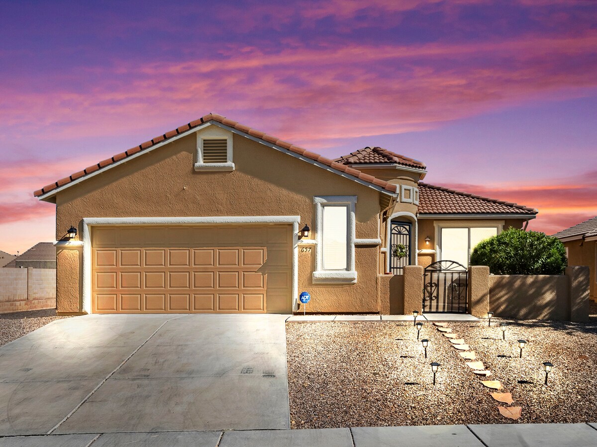 Bu aydınlık, ferah, merkezi konumdaki ev Country Club, alışveriş, marketler ve Fort Huachuca'ya sadece birkaç dakikalık mesafede! Bu bölünmüş kat planı aile, arkadaşlar ve tüylü arkadaşlar için mükemmeldir! Eğlenceli masa oyunlarının, ateş çukuru olan büyük bir arka bahçenin ve aktiviteler için bolca alanın tadını çıkarın! Bir etkinlik mi planlıyorsunuz? Etkinliğinizi daha da özel hale getirmek için bir zıplayan şato, masa, sandalye ve 360 derece fotoğraf kabini sunuyoruz. Neye ihtiyacınız olduğunu bize bildirmeniz yeterlidir. Konaklamanızı unutulmaz kılmak için buradayız!