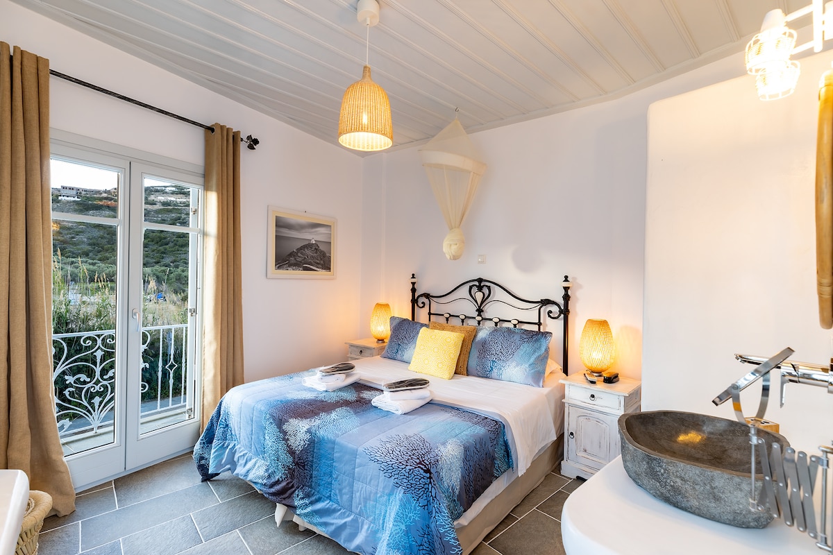 Adanın kuzeydoğu tarafında çok sessiz ve huzurlu bir yerde bir kır evi. Tatilinizde size dinlenme ve rahatlama fırsatı veren Ege Denizi muhteşem bir manzarası vardır. Grecostrom Bodytopia Serisi şilteli queen boy yatağı olan bir ana yatak odası ve mutfakla paylaşılan dinlenme alanında iki tek kişilik yatak vardır. Ayrıca tam donanımlı mutfak ve banyosu da vardır, bu da size tatilinizin tadını kendi hızınızda çıkarma olanağı sağlar.