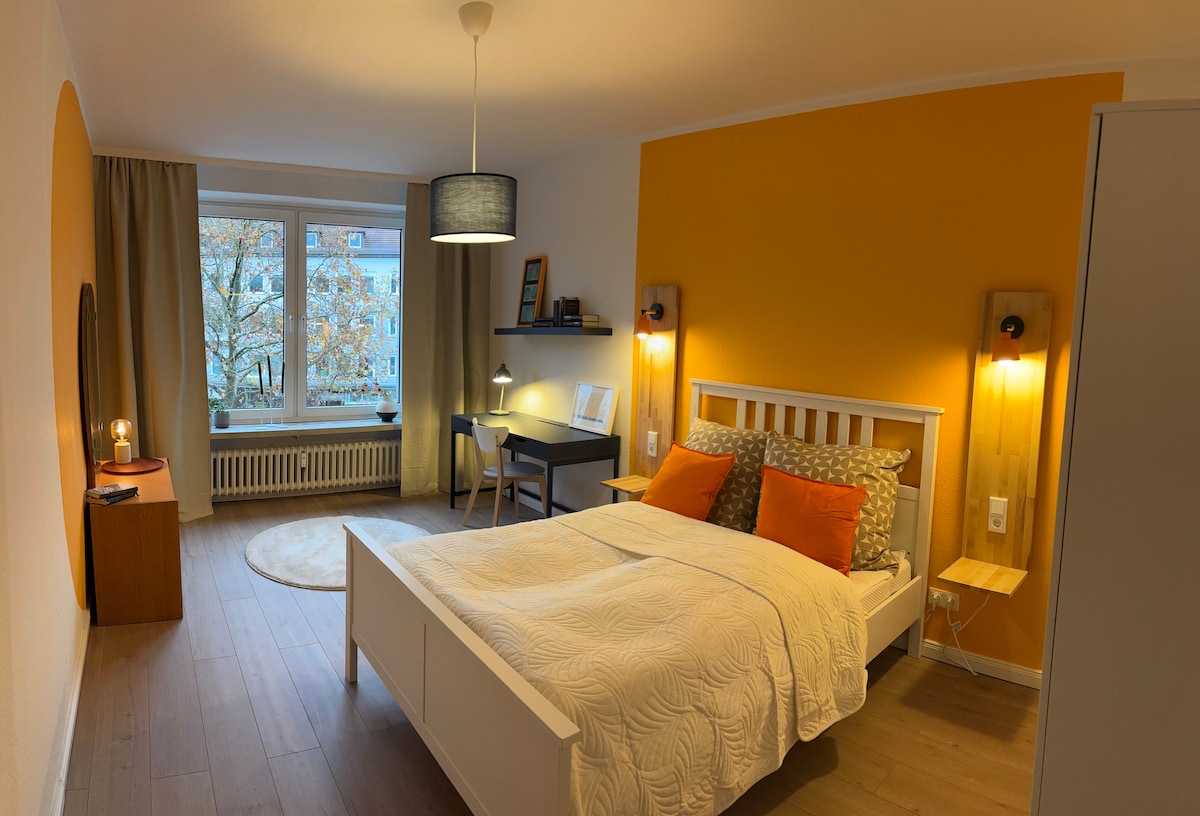 Experience a stylish, newly furnished luxury apartment in the heart of Kassel: → 120 m² of living space → spacious open-plan living & dining area → premium kitchen with island & side-by-side refrigerator with ice maker → large wooden dining table for → 2 modern bathrooms, including a luxury wellness bathroom with whirlpool → large terrace with outdoor furniture & gas grill → ideal for families & groups → central, quiet location & within walking distance to the city center