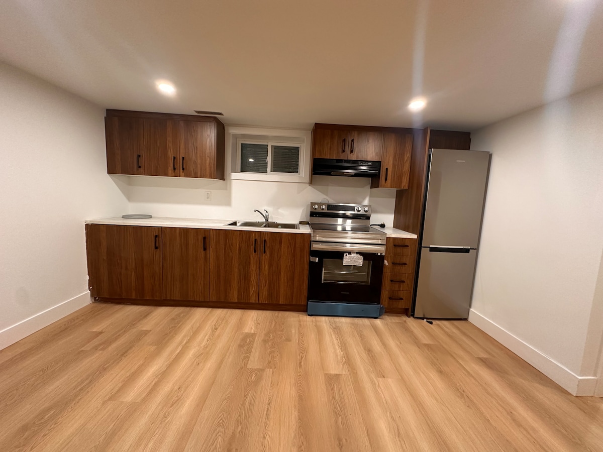 Yeni yenilenmiş tek yatak odalı bodrum katı dairesi.