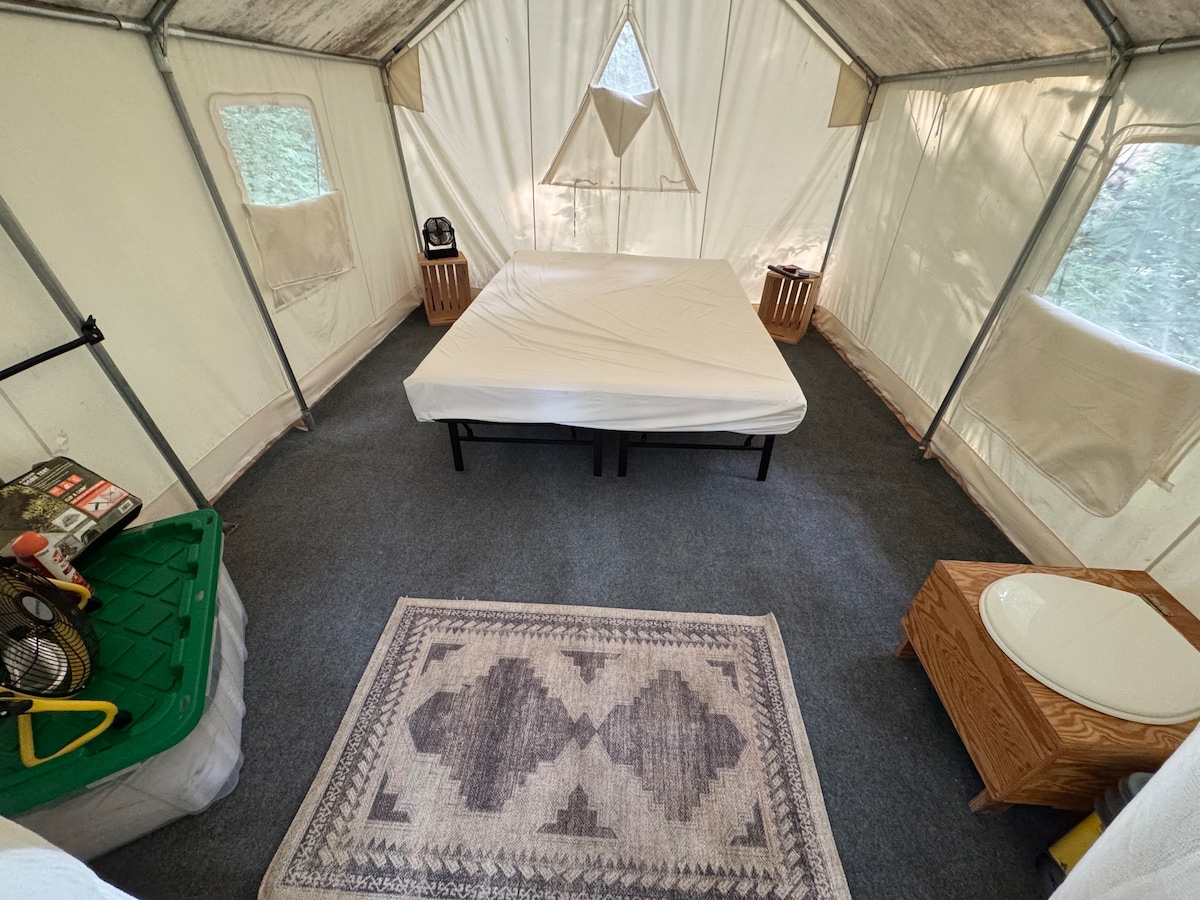 Benzersiz konaklama yerleri sunan bir etkinlik mekânı olan Blue Tin Ranch'a hoş geldiniz! Tavuk kümesi lüks kamp alanı olarak kabul edilir. Bu kaydı rezerve ederken yenilenmiş tavuk kümesimizde ağırlanacaksınız. Kümes, büyükbabamızın çiftliğinden çekilmiş ve Airbnb/yaz mutfağına dönüştürülmüştü! Tamamen size ait iki yatak odası, bir oturma alanı ve bir küçük mutfak olacak. Ortak banyolar sadece kısa bir yürüyüş mesafesindedir. Kümeste takılın veya mülkün sunduğu her şeyi keşfedin! Tavuklar dahil değil