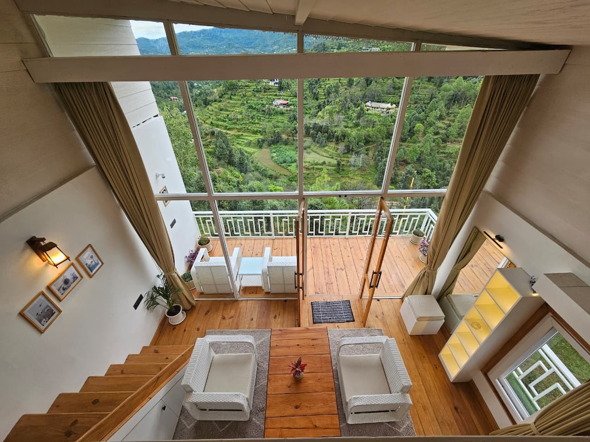 Himalaya'nın karlı zirvelerinin muhteşem manzarasına sahip, yemyeşil bir meşe korusunun ortasında yer alan The Wood Owl Cottage sadece bir aile evi değildir. Döşemenin her gıcırtısı, yaprakların hışırtısı ve kanatların fısıltısının sizi eski bir dost gibi karşıladığı huzurlu bir sığınaktır. İçeri adım attığınızda şömineli geniş bir oturma odası ve iyi donanımlı bir mutfak, iki yatak odası, seyir terası olan bir çatı katı stüdyosu, 3 tuvalet ve birçok oturma alanı ve çalışma alanı olan bir makyaj odası keşfedeceksiniz.