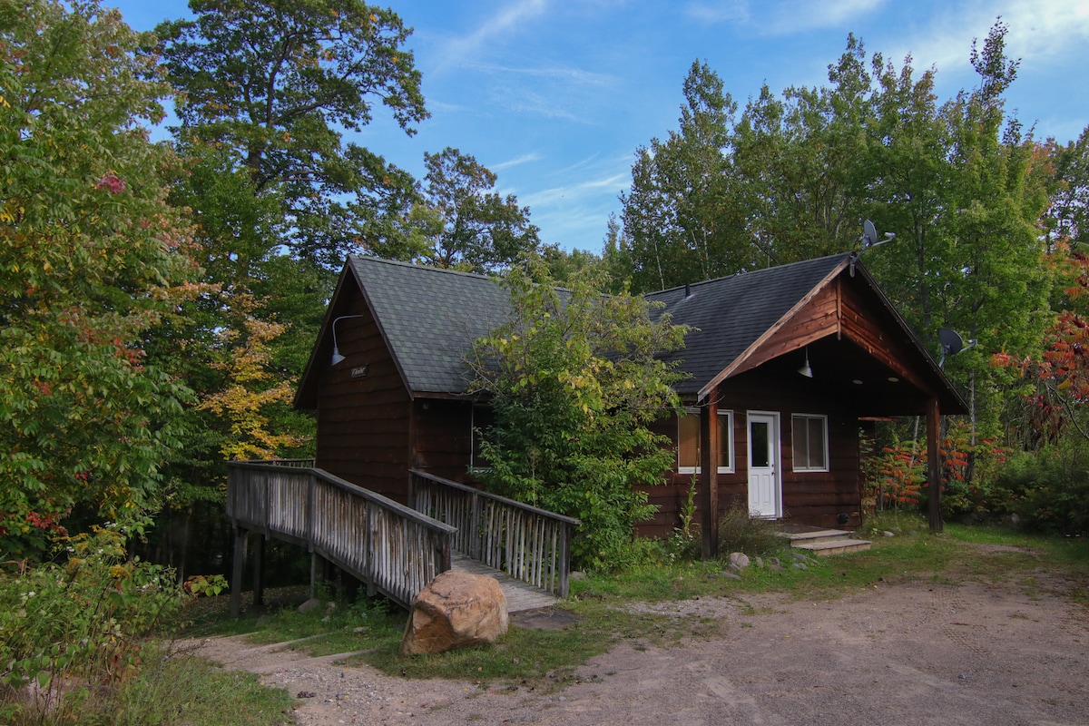 2 yatak 1 banyo kulübe. Peshtigo Nehri üzerinde 2 dönümlük ağaçlık alanda. Özel yol. Rustic Inn-Rapids Resort-Kosirs Rafting'e yürüme mesafesinde. Römorklar/tekneler için park alanı. İyi aydınlatılmış açık alan. Ateş çukuru ve odun sağlanıyor. Bir mil içinde 2 tekne rampası. Kablosuz internet bağlantısı/Netflix/akış uygulamaları dahildir. Nehre kısa bir patika. Tüm pamuklu yatak takımları ve havlular. 4 ayrı yatak. Kaliteli tencere seti ve birçok mutfak malzemesi. Kahvaltı/atıştırmalıklar sunuluyor. Taze yumurta. Köpekler kısıtlamalarla kabul edilir. Yeni yenilendi.