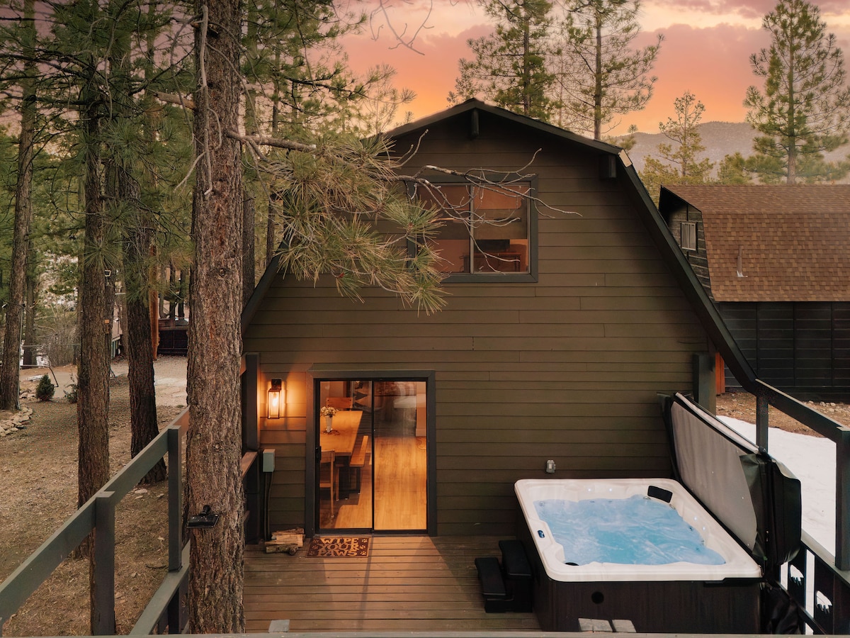 Looking for a romantic getaway? This modern cabin for summer and winter vacations is for you! Perfect for a couple or small family and those who want the value of an Airbnb booking but prefer the privacy and convenience of peaceful vacation lodging and spa. On a clear night, you can see 2.5 million light-years away with just your eyes, so grab your partner, towels and head outside to enjoy the stars while soaking in the most recent line tub and making your nights of stargazing even more magical.