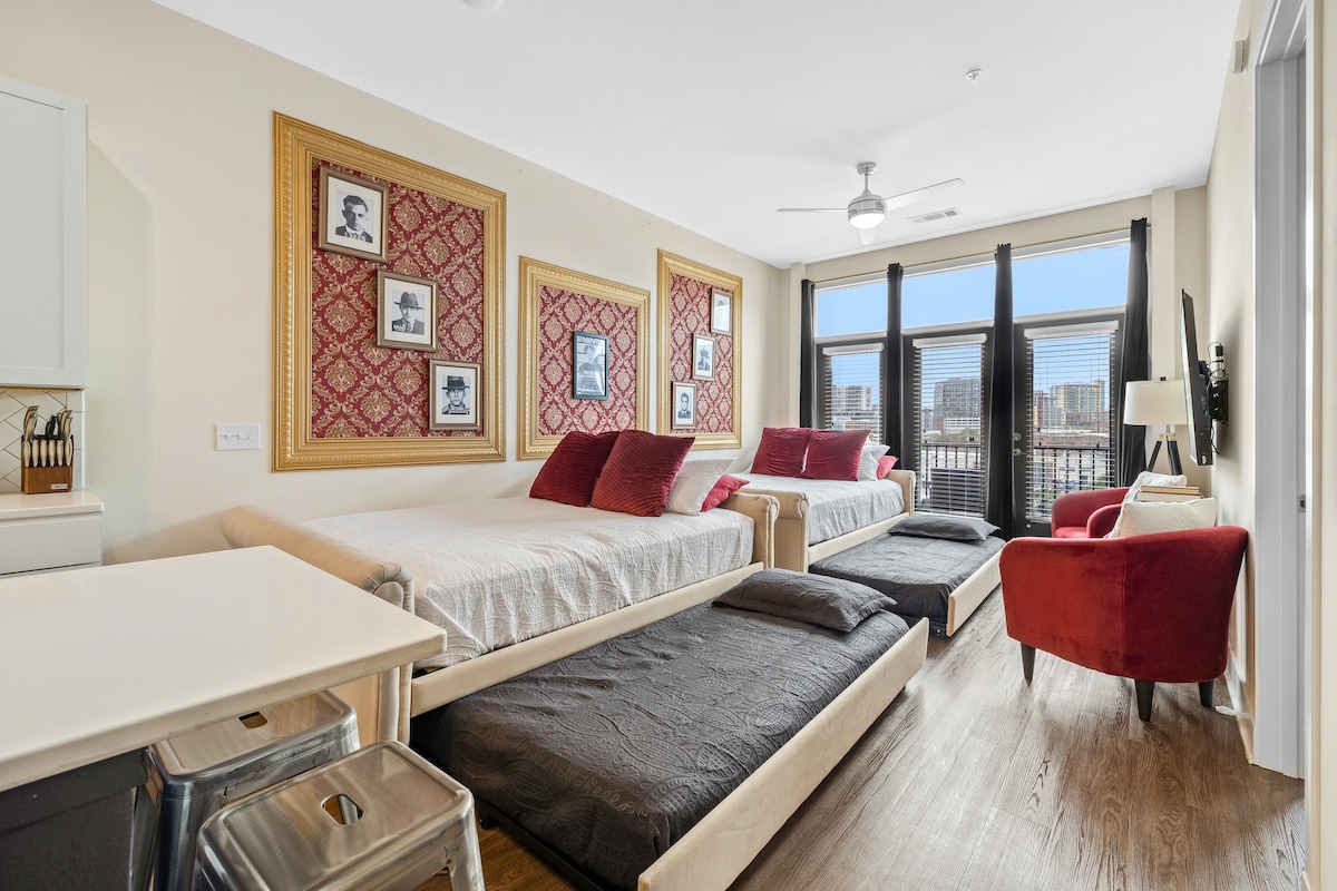 Nashville'in göbeğinde parti yapmaya hazır mısınız? Cesur siyah ve altın 1 yatak odamız Broadway, Honky Tonk barları ve Gulch'a sadece birkaç adım mesafededir! Oyunlarla ön oyun, favorilerinizi iki adet 50inç TV'de yayınlayın ve hızlı kablosuz internet bağlantısı ile kendinizi şımartın. En popüler barlara, canlı müziğe ve restoranlara yürüyün. Vahşi bir hafta sonu, doğum günü partisi veya arkadaşların kaçamağı için mükemmeldir. Aksiyonun olduğu yerde yaşayın, gülün ve anılar yaratın! İzin No. 2022059164