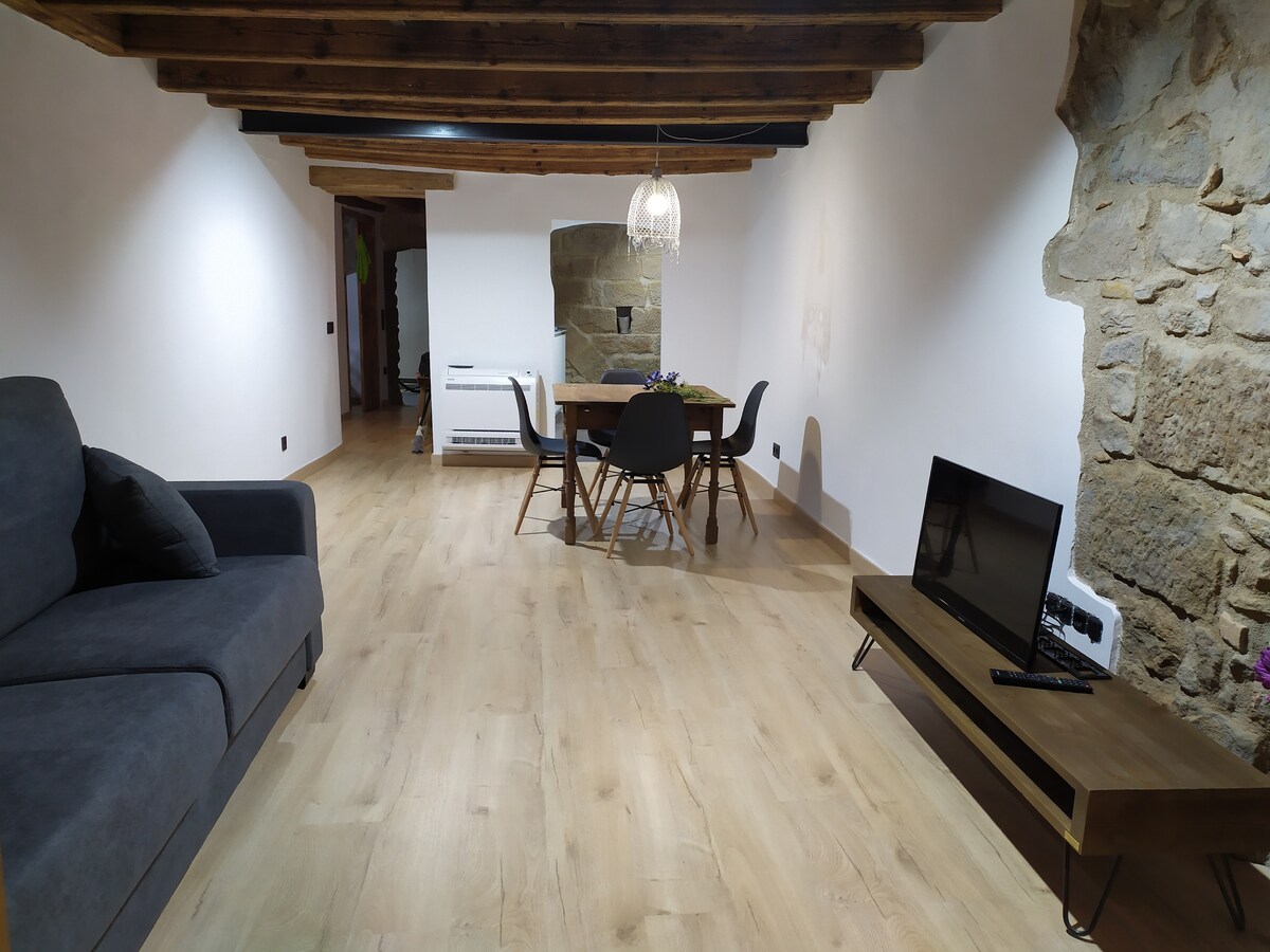 Geniş balkonlu, ferah ve yüksek katlı daire. On dördüncü yüzyılda kökenleri ile Gotik yapıya sahip bir malikanenin ana katında yer almaktadır. Ahşap kirişli yarım noktalı taş kemer ve özgün tavanları muhafaza eder. Kanopi yatağıyla romantik görünümlü. Şöminenin yanında kış akşamlarının tadını çıkarın. Ortaçağ mimarisi, tasarımı ve konforu arasında mükemmel bir uyum içinde, kendi karakterine sahip bir alan. Mutfak ve banyo ile tam donanımlı