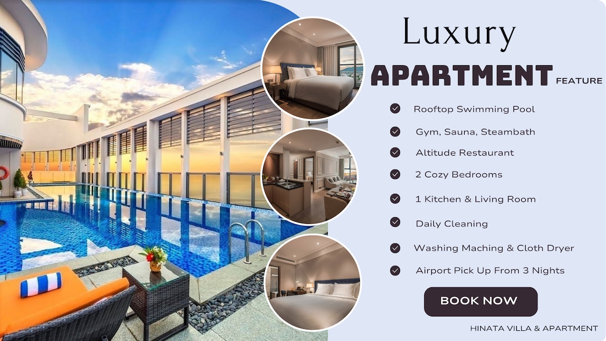 Welcome to the Beachfront Lovers Bliss Retreat, a luxurious 5-star apartment perfect for couples. Located on My Khe Beach, this retreat offers stunning ocean views and a romantic atmosphere, enjoy a stylish apartment featuring a plush king-sized bed and a fully equipped kitchen for preparing meals together. Indulge in our on-site restaurant for delightful local and international cuisine.
